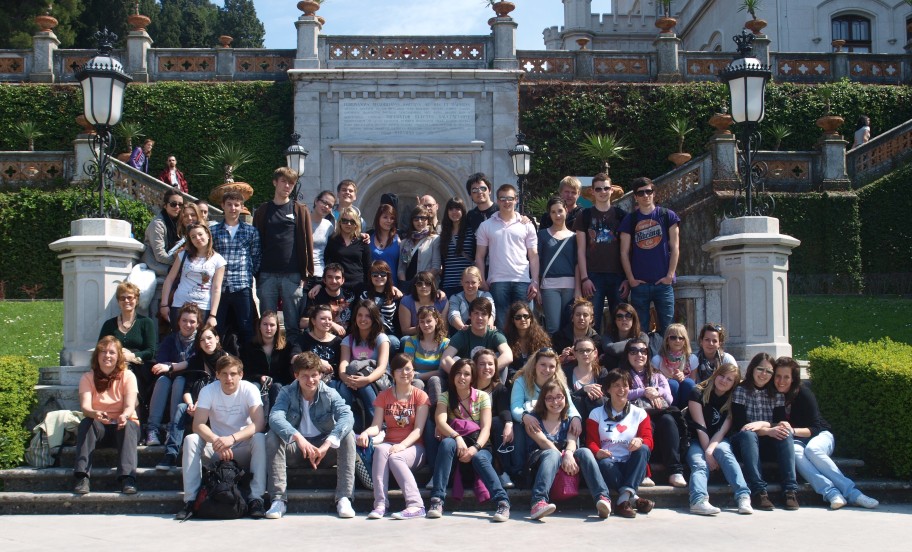 Nella settimana a Trieste è stata preziosissima la collaborazione dei professori Massimo Stera,Rita Volsi, Massimo Gnezda, Fabio Feri e Elena Bertocchi: gli insegnanti di educazione fisica Volsi e Stera hanno organizzato giochi in palestra, il prof. Gnezda ha condotto i tedeschi in visita alla città e ha fatto loro da cicerone, la prof.ssa Bertocchi ha organizzato la gita, le visite e il gioco (caccia all'opera d'arte) a Venezia! La settimana è stata densissima: Val Rosandra, castello di Miramare, gallerie antiaeree (Kleine Berlin)... |